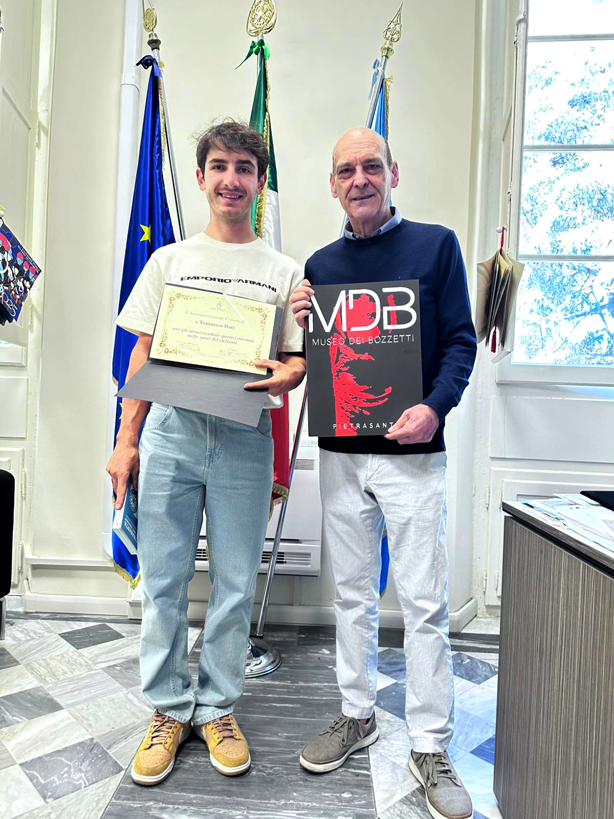 L'assessore allo sport del Comune di Pietrasanta, Andrea Cosci, ha consegnato a Tommaso Dati, classe 2002 e recente vincitore della 78ª edizione della "classicissima di Ferragosto", la Firenze-Viareggio, una pergamena istituzionale in riconoscimento degli ottimi risultati ottenuti nel mondo del ciclismo. Dati, pietrasantino doc, dopo essersi distinto nelle gare amatoriali ha "fatto il salto" nel semiprofessionismo, iniziando a correre per la squadra bergamasca DS Carrera. "In questi anni – ha ricordato Cosci – abbiamo manifestato con questo riconoscimento istituzionale il nostro sostegno a tanti giovani pietrasantini che si sono distinti nello sport, sia per incoraggiarli a proseguire nei loro percorsi, sia per sottolineare il loro essere un esempio positivo per i coetanei. Tommaso ha avuto ottimi risultati e speriamo che questo omaggio sia di buon auspicio per la prossima stagione sportiva, in categoria superiore".
