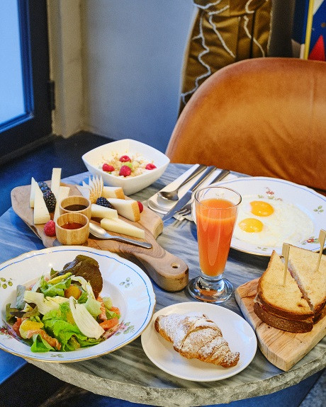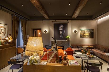 Parla molto di Alain e del suo gusto, della sua innata e spiccata passione per il Bello e il Buono, l’ambiente del Paradis Pietrasanta. A cominciare dal lounge bar Ariodante, che ha voluto chiamare così in onore del padre che portava il nome di un eroe dell’Orlando Furioso e poi di un’opera di Haendel: una bella sala con arredi in velluti Casamance e tavolini in ferro e bardiglio circondati da opere di grandi artisti, ecco Cesar e Folon, ecco Lorenzo Quinn e Ciulla. Qui, secondo i consigli del bar manager Gianluca Montanelli, si può prendere la piccola colazione, con il classico breakfast veloce all’italiana, caffè o cappuccino e croissant. Oppure optare per la carta del breakfast fornito al costo di 15 euro ai clienti dell’hotel e composto interamente da prodotti biologici: bevande, burro, confetture, pane del forno Lenzoni di Camaiore e focaccine fatte in casa, e in più uova strapazzate o fritte, bacon, taglieri di formaggi ovini e caprini. Nella sala lounge si può scegliere anche di pranzare, alla carta con piatti e proposte tradizionali, e non manca mai il pesce del giorno. La domenica si può optare per il brunch (disponibile ogni giorno) dalle 12h alle 15h, oppure per la formula “pranzo della domenica” (per il quale ci si sposta nella sala del ristorante), con scelta tra un menu di terra o di mare a 50 euro inclusi il coperto, l’acqua e il caffè, per dedicare un piacevole pit-stop gastronomico al tour fra i tesori di Pietrasanta. Dalle 15h alle 22h è disponibile una carta degli snack con focacce, tartine, hamburger e altre prelibatezze, ottime anche come aperitivo con vari amuse-bouche dalle 17h in poi, da assaporare insieme ai cocktail proposti in una carta stagionale tematica. Oltre alla lista dei gin e di classici distillati, si possono scegliere amari, bibite e caffetteria, le birre del Birrificio del Forte. Ci sono poi nove drink Signature composti da prodotti dell’agro-foresteria Paradis e di aziende locali. Da aggiungere che tutti i giorni dal lunedì al sabato è disponibile un menu del giorno per il pranzo a 32euro con antipasto, primo piatto e dolce, bevande escluse.