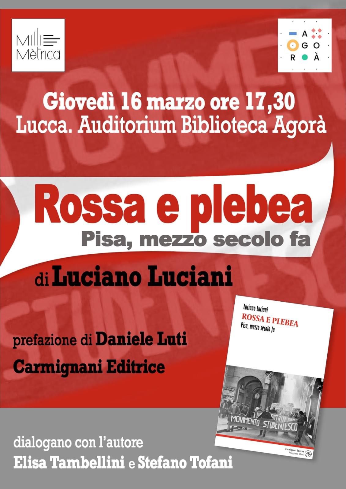 Annullata la presentazione del libro "Rossa e plebea - Pisa mezzo secolo fa" dell'intellettuale di sinistra Luciano Luciani, inizialmente programmata all'Agorà per giovedì prossimo, 16 marzo.