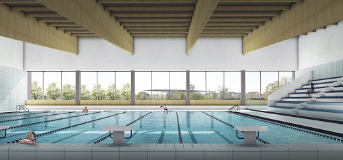La nuova piscina è pensata per la realizzazione di competizioni sportive, corsi per adulti, bambini e disabili e per attività di fitness, compresa un’area adibita a palestra. Il progetto prevede anche la realizzazione di un’area per gli spettatori, zona ristoro, parcheggio e dotazioni di verde pubblico. Una struttura multifunzionale e integrata con lo spazio esterno: insomma un vero e proprio hub socio-sportivo che connette nuove modalità di fruizione offrendo elevati livelli di qualità architettonica in funzione di una gestione sostenibile sia dal punto di vista economico-finanziario sia ambientale.