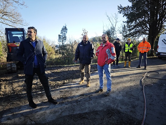 L'assessore ai lavori pubblici Nicola Buchignani e i tecnici comunali si sono recati al cantiere per il ripristino di via di Castagnori nel tratto a poca distanza dal crinale collinare e dal confine con la frazione di Pieve Santo Stefano.