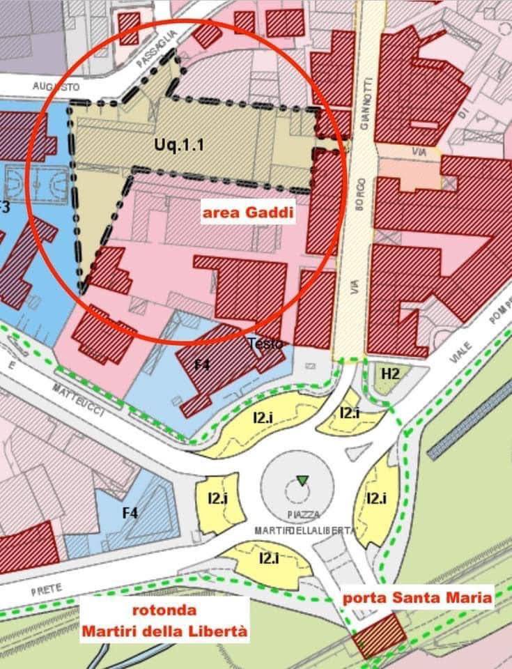 Una su tutti è la cosiddetta area Gaddi a Borgo Giannotti, a pochi metri dalle Mura (oggi il Borgo, vicinissimo agli spalti, può essere considerato a tutti gli effetti “centro storico”). Una superficie ormai degradata, in territorio urbanizzato, di oltre cinquemila metri quadrati. Un pezzetto di città per il quale il Piano prevede funzioni commerciali (al dettaglio, esclusa la media struttura di vendita), direzionali-di servizio e turistico-ricettive che sarebbe ottimale e sensato rivisitare in termini di rinnovo urbano utile al vivere quotidiano degli abitanti. Il recupero delle volumetrie esistenti per la costruzione di edifici con queste nuove funzioni sarebbe subordinato alla realizzazione e cessione al Comune di aree di sosta e parcheggio per almeno tremila metri quadrati, collegate, con percorso pedonale da Borgo Giannotti fino a dentro le Mura. Forse 25 milioni di euro per questo recupero basterebbero e avanzerebbero.