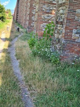 Le foto illustrano il degrado della strada pedonale che affianca l'acquedotto nel Nottolini nel tratto più vissuto, fra il Tempietto di San Concordio e la passerella dell'autostrada. Erba lunga, pioppi che crescono, rifiuti di residui di bivacchi di senza tetto. Sulla struttura dei primi dell'Ottocento continuano a vedersi i segni del tempo e della mancata manutenzione, per non parlare dell'intervento dell'uomo negli anni passati: fili della luce impiantati sulla struttura, residui di lampade antiche (per lo meno allora si illuminava il pregevole percorso pedonale).