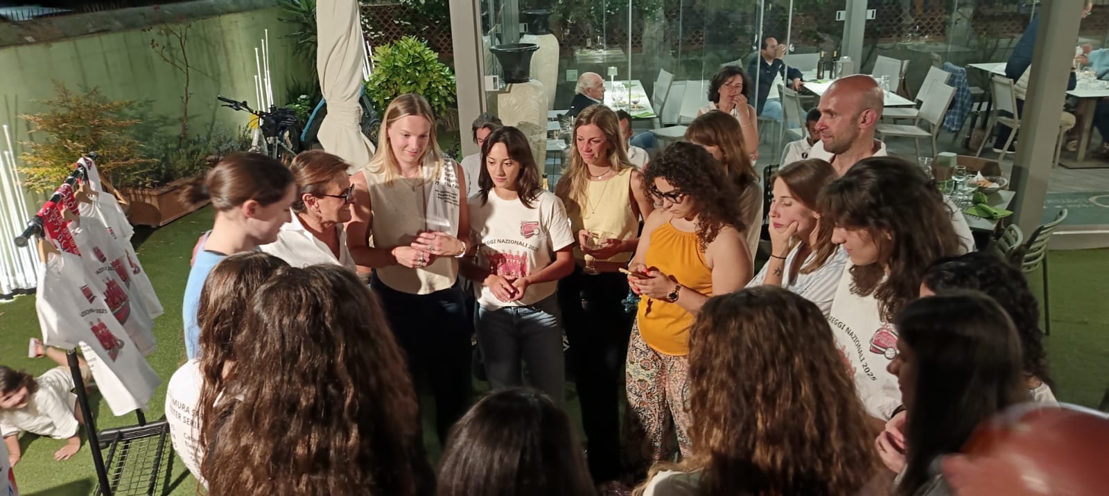 “È finito un campionato molto combattuto – ha commentato - dove le ragazze hanno raggiunto una bellissima semifinale al temine di una stagione di grande spessore. Faccio i miei complimenti a tutta la società perché non era né facile né scontato far risorgere il basket femminile a Lucca ma, come abbiamo visto, i risultati stanno arrivando. L’amministrazione rivolge a questa società, che quest’anno ha fatto tutto con le proprie forze, un grande in bocca al lupo per il futuro e le rinnova i complimenti per i grandi risultati raggiunti nel corso della stagione”. Esprime soddisfazione anche Rachele Settesoldi, presidente del sodalizio lucchese. “Abbiamo fatto una stagione in costante crescita che ci ha portato a questo importantissimo risultato e, alla fine, soffro poco per il mancato accesso alla finale perché, guardando alla sostanza, le ragazze hanno fatto un bel percorso e quindi siamo tutti molto soddisfatti. Se poi guardiamo in un’ottica di prospettiva e di crescita, considerando che tre anni fa eravamo ai play out e l’anno scorso ai play off non riuscimmo a raggiungere la semifinale, il mio giudizio non può che essere positivo”. E com’è giusto che fosse, si è respirato aria di festa in questa “serata dei saluti” che ha messo in luce anche il grande affiatamento che si è creato tra lo staff tecnico, quello dirigenziale e tutta la squadra. Tra le foto di gruppo, gli abbracci, gli aneddoti sulla stagione appena conclusa ed il confronto sui progetti futuri, ci è scappata anche qualche lacrima dal momento che la giocatrice che ha contribuito a dare la svolta alla stagione, Elsa Paulsson, è giunta ai saluti finali ma è normale e molto significativo che, in circostanze come questa, ci possano essere momenti di commozione. Si capisce infatti che il gruppo è molto unito e si ha la netta impressione che sia stata proprio questa compattezza l’arma in più che le ha permesso alla squadra di vivere una stagione esaltante. Ma chi meglio del capitano della squadra, Sofia Michelotti, può fare un resoconto dell’annata appena conclusa? “Siamo partite con l’obiettivo di fare bene – ci dice Sofia – come nella stagione precedente. Non è stato facile però con la collaborazione di tutta la squadra abbiamo fatto un percorso in crescita e, grazie agli innesti che ci hanno apportato tanta esperienza, siamo state in grado di fare meglio, arrivando ai risultati che tutti sappiamo. Non ci aspettavamo di arrivare così in alto e questo ci rende tutti molto contenti. Il prossimo anno sarò ancora qui e spero che il gruppo mantenga la stessa grinta ed abbia grande convinzione nel fare sempre meglio e di imparare sempre di più”. Le ragazze de Le Mura, in questa stagione, sono state tanto brave quanto coraggiose ed il merito può essere ascritto a tutta la società a partire dall’allenatore fino a tutto lo staff e la dirigenza. Le Mura Spring hanno dimostrato di essere una squadra dentro e fuori dal campo e questa è sicuramente la via maestra per continuare ad aspirare ad un futuro ricco di soddisfazioni.