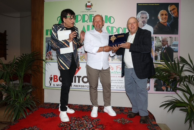 Sono state dieci le Sfingi d’Oro assegnate in occasione della 26^ edizione del Premio Fedeltà allo Sport che si è tenuta, martedì 3 giugno, nell’ormai storica location dell’Hotel Country Club di Gragnano, che dal 2009 ospita questo importante appuntamento, come sempre impeccabilmente organizzato e presentato da Valter Nieri. Il parterre dei premiati è stato, come al solito, prestigioso ed il riconoscimento fisico, coniato dall’artista lucchese Giampaolo Bianchi, è andato a campioni del mondo, campioni olimpici e personalità che si sono distinte o si stanno mettendo in mostra in sport come scherma, pugilato, calcio, pallavolo, ginnastica ritmica e ciclismo. I primi a salire sul palco, dopo i saluti istituzionali portati dal sindaco di Capannori Giordano Del Chiaro, dall’assessore allo Sport Gaetano Ceccarelli e dall’ex sindaco di Capannori Luca Menesini, sono state due leggende del calcio italiano, Giuseppe Bergomi, bandiera dell’Inter e campione del mondo in Spagna nel 1982, e Roberto Donadoni, fantasista e colonna portante del Milan stellare di Arrigo Sacchi. “Sono felicissimo di ricevere questo premio – ha detto lo “zio” – perché la fedeltà, nel calcio di oggi dove le bandiere non esistono più, è diventata una cosa rara. Da calciatore ho giocato solo nell’Inter con cui ho collezionato 519 presenze in Serie A e poi sono entrato come commentatore a Sky dove lavoro tuttora. Quello di stasera è un bellissimo riconoscimento, in un mondo dove si fa fatica ad essere fedeli e restare tanti anni in una squadra”. A Bergomi è stato poi consegnato, dal figlio Leonardo Simoni, anche il 3° Premio “Gigi Simoni”, suo allenatore nell’Inter nel 1998, nell’ultima stagione da calciatore che lo vide protagonista anche ai Mondiali di Francia ’98. “Sono felice di essere stato coinvolto in questo premio – ha commentato Roberto Donadoni dopo essere salito sul palco tra gli applausi. Per me è una grandissima soddisfazione ricevere questo riconoscimento e, per questo, ringrazio tutti gli organizzatori”. Il fantasista rossonero, assieme a Valter Nieri, ha poi ripercorso la sua fantastica carriera impreziosita da ben 6 scudetti, 3 Coppe dei campioni, 2 Coppe Intercontinentali, 3 Supercoppe Europee e 4 Supercoppe Italiane oltre al secondo posto ai Mondiali di Calcio nel 1994 negli Stati Uniti dietro al Brasile. Anche a Donadoni, oltre alla Sfinge d’Oro, è stato consegnato il 10° Premio “Aldo Biagini”, in memoria dell’ex presidente della Lucchese. Non solo calcio però in questa 26^ edizione del Premio Fedeltà che, in un quarto di secolo, ha premiato ben 526 campioni di 17 diverse discipline sportive. La terza, la quarta e la quinta Sfinge d’Oro sono state consegnate rispettivamente a Patrizio Oliva, Campione Olimpico nel pugilato ai Giochi di Mosca 1980 nei pesi superleggeri e che nei suoi 155 incontri in carriera ne ha vinti 150 di cui 65 per KO, a Giuseppe Martinelli, il più titolato direttore sportivo italiano nel panorama ciclistico internazionale, già vincitore da ciclista di un argento ai Giochi Olimpici di Montreal del 1976, oltre a 3 vittorie di tappa al Giro d’Italia, che con le sue squadre ha vinto 9 grandi Giri con campioni del calibro di Pantani, Garzelli, Nibali, Cunego ed Aru, ed Elisa Di Francisca, due volte campionessa olimpica nella scherma, individuale ed a squadre, ai Giochi di Londra del 2012, e che vanta anche 13 titoli europei e 2 Coppe del Mondo. “Conosco molto bene Lucca – ci ha dichiarato la statuaria ed elegantissima campionessa marchigiana – perché qui ho partecipato a diverse gare e sono molto affezionata alla Toscana, che è molto simile alle Marche. Sono molto onorata di essere qui e di ricevere questo premio dopo gli ori alle Olimpiadi di Londra. Sono orgogliosa di aver fatto cose belle in uno sport che ho sempre sognato ed in cui ho raggiunto obiettivi importanti. Ora, chiusa la carriera agonistica, vivo a Roma e mi prendo cura dei miei due figli che, senza nonni, è molto impegnativo. Insegno scherma ai più piccoli, faccio parte delle Fiamme Oro e, se capita, prendo parte a programmi televisivi”. È stata poi la volta di Milena Baldassarri che, supportata in sala dalle giovanissime fans della Gym Star di Capannori, ha ritirato il premio che si è meritato grazie ai risultati, fatti di grazia ed eleganza, che ha ottenuto in una delle discipline più impegnative e selettive del panorama mondiale, la ginnastica ritmica. Il suo ritiro dall’attività agonistica a soli 23 anni non le ha impedito di entrare a pieno merito nell’albo d’oro del Premio Fedeltà che annovera importanti rappresentanti di ogni disciplina sportiva sia a livello nazionale che internazionale. Non potevano certo mancare, alla serata, altre figure storiche del Premio Fedeltà allo Sport, ossia il presidente onorario nonché atleta paralimpico Stefano Gori ed il socio onorario Umberto Stefani, ma anche due giornalisti sportivi di altissimo spessore come Alberto Cerruti ed il lucchese Luca Tronchetti, anch’egli socio onorario. A completare l’elenco dei premiati, ultimi solo in ordine di tempo in una serata dove il tempo è stato scandito dalla sapiente regia di Valter Nieri, vero e proprio “deus ex machina” del Premio, due campioni di ciclismo, Ivan Quaranta e Walter Brugna, rispettivamente attuale CT azzurro della nazionale su pista con un passato da velocista su strada (6 i successi per lui al Giro d’Italia) e il Campione del Mondo di mezzofondo su pista nel 1990 in Giappone, lanciato dal grande Ivano Fanini, presente anche lui tra tutti gli ospiti in sala. Hanno chiuso il cerchio dei premiati la giovane promessa del volley Margherita Meoni, livornese di nascita ma con trascorsi nelle file della Nottolini Capannori e con un futuro già assicurato nel campionato di A2 nazionale per difendere i colori della Offanengo Volley di coach Giorgio Bolzoni e uno degli allenatori più vincenti di sempre, sempre nella pallavolo, c