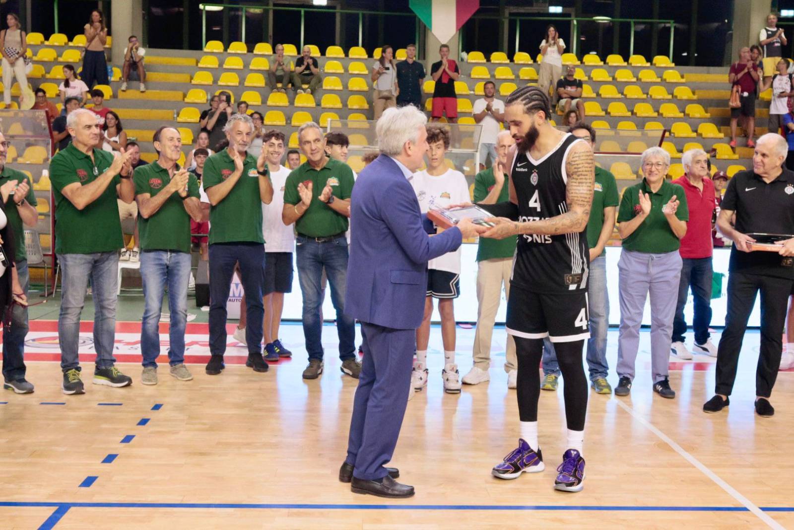 Coach Ivanovic schiera Taylor, Morgan, Canka, Alston e Smailagic mentre il Partizan di Obradovic risponde con Washington, Brown, Bosnjakovic, Parker e Jones.